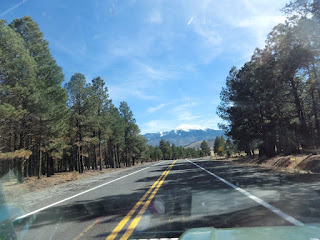 On the way to the hospital, a snow- covered mountain in Arizona. Humphrey's Peak, I think. Notice how clean my windshield is, thanks to Curtis in Ely.
